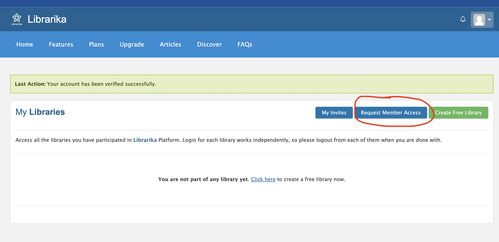 The link will send you to the “My Libraries” page. Click the “Request Member Access” Button.